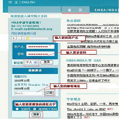 l 如果您是初来的访客,为了更充分使用本网站功能,首先请在网站首页左侧登录界面,点击新注册。注册会员可查阅最新、最全面的课程信息,了解最新奖学金动向,也可阅读到权威分析文章全文和全球商学院的研究精要的全文。 l 如果您已是会员,请在网站首页左侧登录界面以个人会员身份输入用户名和密码后,点击登录,进入网站。您将直接进入会员中心,查看您的收藏,并可继续您的浏览。网站为您返回的信息与非登录来访者是不同的。 l 每月我们在首页左侧最新通讯板块各推出一期鲲鹏日历和会员月刊,将定时通过邮件发送给会员。 鲲鹏日历:每月集锦顶尖商学院的管理论坛、公开课程与校友活动,会员可以通过网站免费索票。 会员月刊:为您采访企业界名人和管理教育界大师,整理他们的心得与您分享,同时我们与您一同寻找既要事业成功,又能获得幸福生活的方式和方法,摘取一系列的社会、人文、音乐、心理等精髓与您共勉,我们还将给您推荐身边优秀的课程。 l 网站左侧设有搜索引擎。您不用费神到处去搜索课程信息了,只要登录网站会员后在搜索栏中输入您想要了解的课程名称,看看我们能为您返回哪些信息。既简便又快捷? 本网站有强大的管理课程数据库支持,您可以试试。