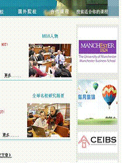 1、从网页上部可进入几大频道,他们分别是:EMBA/MBA排行榜、国内院校、国外院校、合作课程、搜索适合你的课程。