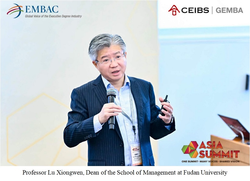 Lu Xiongwen, Dean of the School of Management at Fudan University, delivered a keynote speech titled “The Chinese View of the MBA/EMBA Education Market” during which he reviewed the history and current landscape of business education in China, noting that today, over 90% of Chinese universities have established management or business schools, totaling nearly 800 institutions.