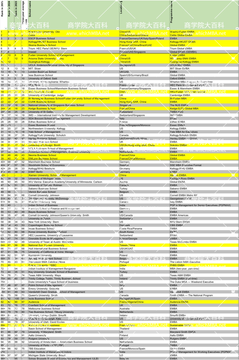 2025英国《金融时报》EMBA 百强榜 完整榜单