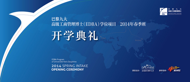 2012年11月底,巴黎九大高级工商管理博士(以下简称”EDBA”)项目顺利启动,如今,经过一年的发展,EDBA项目日臻成熟,2014年春季班即将于2014年1月9日举办开学典礼,并由项目学术主任BERNARD FERNANDEZ教授亲自讲授14届第一门课程《研究设计》。 在《研究设计》这门课上,EDBA项目学术主任BERNARD FERNANDEZ教授将与在座学员一起,共同分享EDBA学术研究、论文写作的总体思路、注意事项、研究进度等,让EDBA新生们在较短的时间内对高级工商管理博士项目的学术历程有一个全面直观的了解,并以此门课程开启高级工商管理博士求学之旅。